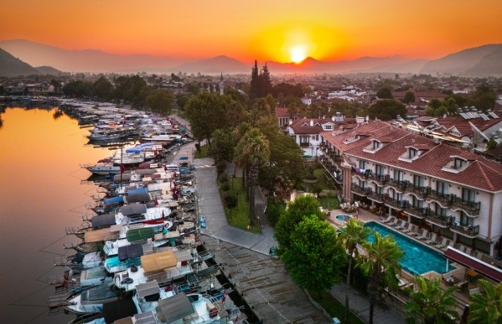Caria Luxury Hotel Dalyan kanalının kıyısında konumlanıyor. Konumu itibarıyla sadece masalsı güzellikteki manzarasının yanı sıra, ulaşım kolaylıklarıyla da dikkat çekiyoruz.