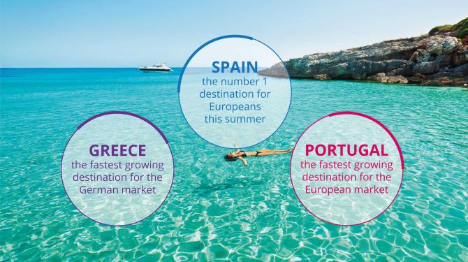 İspanya, tüm Avrupa kaynak pazarlarından rezervasyonları sayarken Hotelbeds Group'un sistemindeki en iyi hedef noktayı elinde tutuyor. İspanya sırayla ABD, Yunanistan, Portekiz, İtalya ve Türkiye (genel olarak rezervasyonlarda önemli bir düşüş görülüyor) tarafından takip ediliyor. Bütün bu yerler arasında Portekiz, yüzde 28 artışla yıllık bazda en hızlı büyümeyi kaydetti.