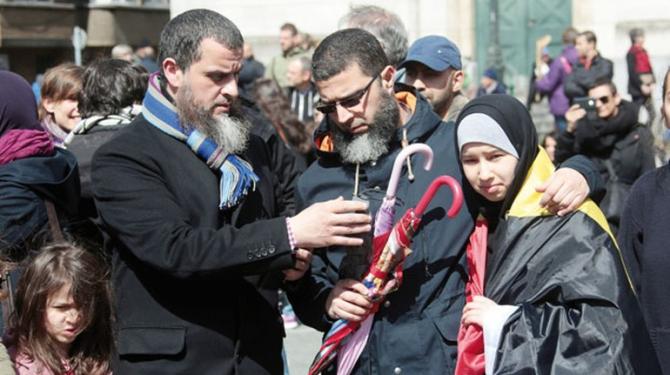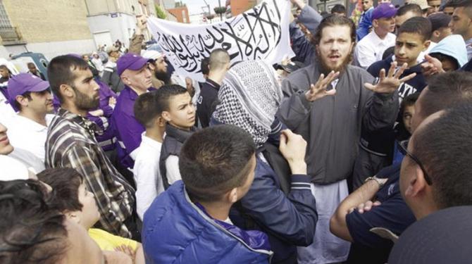 ‘Sharia4Belgium’ (Belçika için şeriat) adlı radikal İslamcı grubun Ocak 2012’de Molenbeek’de düzenlediği bir protesto gösterisi. En fazla merak edilen mahallelerin başındaysa Kasım 2015’te 130 kişinin öldüğü Paris saldırılarını düzenleyen IŞİD’cilerden en az ikisinin, Belçika vatandaşı Abdülhamid Abaaoud ile Brahim Abdüsselam’ın yaşadığı, Belçika’nın başkenti Brüksel’in ‘Molenbeek’ bölgesi geliyor.