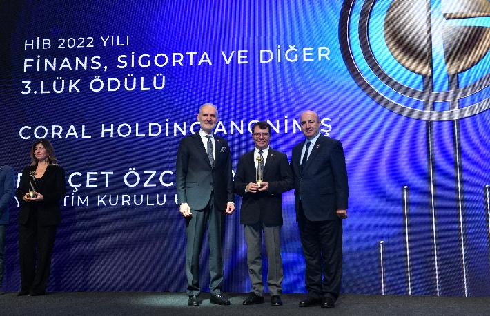 Hizmet İhracatçıları Birliği (HIB) tarafından Hilton İstanbul Bakırköy otelinde gerçekleştirilen "Hizmet İhracatçıları Buluşması ve 2022 Yılı Hizmet İhracatçıları Birliği (HİB) Ödül Töreni"nde Coral Holding A.Ş. iştiraklerinden ODEON Turizm İşletmeciliği A.Ş “Seyahat Acenteliği Hizmetleri” kategorisinde birinci, Coral Holding A.Ş. ise “Finans, Sigorta ve Diğer Mali Hizmetler” kategorisinde üçüncü olarak iki ödülün birden sahibi oldu.