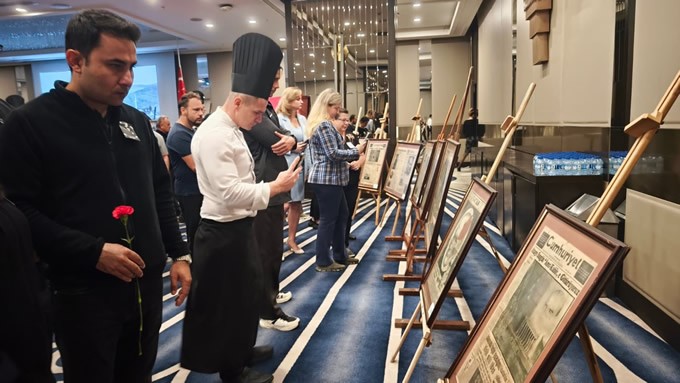 Türkiye Cumhuriyeti'nin kurucusu Ulu Önder Mustafa Kemal Atatürk’ü anmak amacıyla düzenlenen sergi, Atatürk’ün ölüm saati 09.05’teki anma töreninin ardından açıldı. 1940’lı ve 1950’li yıllara ait orijinal 10 Kasım gazetelerinin yer aldığı sergi, özellikle otel personelinin büyük ilgisini çekti.
