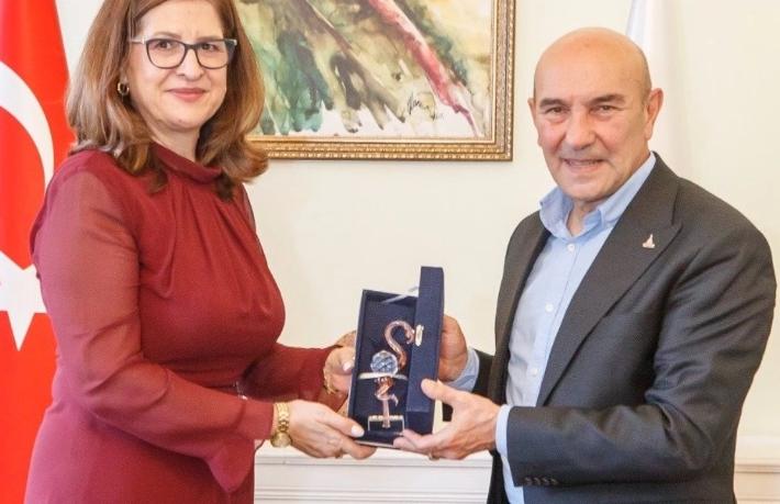 İzmir Büyükşehir Belediye Başkanı Tunç Soyer, Romanya’nın İzmir Başkonsolosu Mioara Stefan’ı makamında ağırladı. Soyer, “Biz direkt uçuşlarla ilgili çalışmalarımıza Romanya’yı da ekleyeceğiz” dedi. İzmir’de görev süresi sona eren Romanya’nın İzmir Başkonsolosu Mioara Stefan, İzmir Büyükşehir Belediye Başkanı Tunç Soyer’i ziyaret etti.