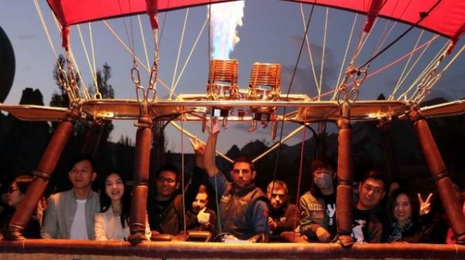 Gördüğünüz üzere de bölgede ciddi bir hareketlilik şuan itibarıyla var özellikle havada. Tabi Çinliler için Kapadokya'ya gelme sebeplerinden bir tanesi sıcak hava balonlarına binmek. Aldığımız bilgilere göre yüzde 80, yüzde 85 civarında gelen Çin Halk Cumhuriyeti'nden gelen turistin balona binme eğilimi var. O yüzden ileri ki 10 günlük dönemde Çin bayramında balonlarda yüzde yüz doluluk bekliyoruz" dedi.