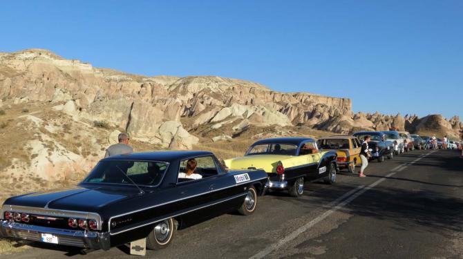 Kapadokya, yarım asrı devirmiş tarihi otomobillere ev sahipliği yaptı. Bir döneme damga vurmuş onlarca araç, doğa mucizesi peri bacalarıyla birlikte birbirinden renkli fotoğraf kareleri oluşturdu.