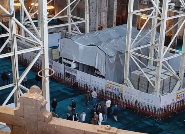 Parça parça bölüp çıkartmak yerine tek seferde kaldırmak için ağır tonajlı vinç soktular” dedi. Vakıflar Genel Müdürlüğü, çalışmaların kontrollü ve bilimsel raporlar doğrultusunda yürütüldüğünü savundu. Ayasofya'da başlatılan restorasyon çalışmaları sırasında, tarihi binanın içine yüksek tonajlı vinçler sokulduğu anların görüntüsü sosyal medyada gündem oldu. Neredeyse 1.500 yıllık geçmişe sahip olan Ayasofya, daha güvenli ve düzenli bir yapıya kavuşması amacıyla kapsamlı restorasyon sürecine girmişti.