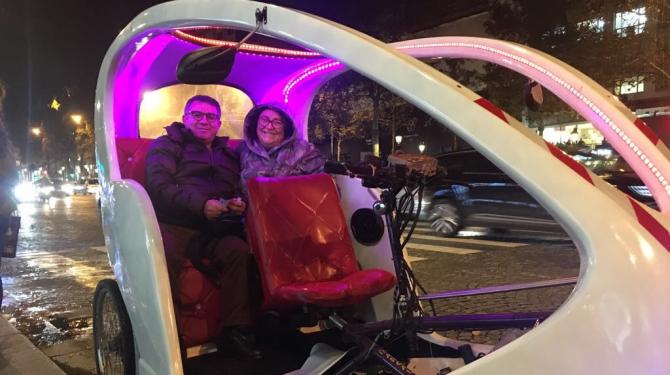 Eyfel Kulesi yakınında nehir turunu bitirdik. Akşam yemeği için elektrikli bisikletle Eyfel Kulesinden Champs-Elysees Caddesi ne keyifli bir seyahat, Léon de Bruxelles Champs-Elysees de akşam yemeği ile günü tamamladık.