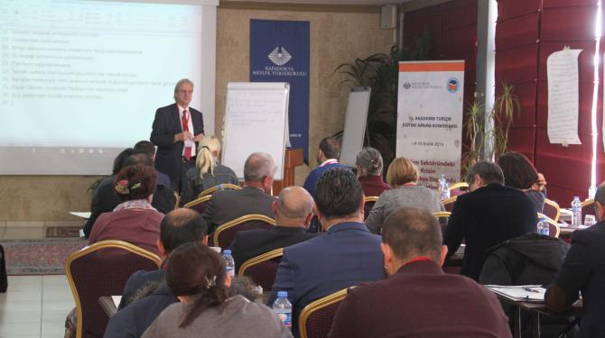 Ürgüp Dinler Otel’de iki gün boyunca devam eden konferansta, aralarında Kapadokya Turistik Otelciler ve İşletmeciler Derneği (KAPTİD) Başkanı Yakup Dinler, Turizm Yazarları ve Gazetecileri Derneği (TUYED) Başkanı Kerem Köfteoğlu’nun yanı sıra, turizmci ve akademisyenlerin bulunduğu davetliler, Kapadokya bölgesinin krizden çıkış reçetesinin 10 maddesini yazdı.