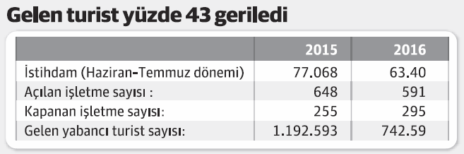 Hürriyet'te yer alan haberde, 2014’te çok iyi bir sezon geçirdikten sonra 2015’te Rusya krizi, Suriye’deki göçmenler derken gerilemenin başladığını, ardından yaşanan terör olaylarıyla 2016’da çok kötü bir sezon geçirdiklerini belirten Kocadon, “Turist önce güvenlik ister. Bize gelmeyen turistler Tunus, Portekiz, Yunanistan gibi ülkelere gitti. 1.4 milyonu gören yabancı turist sayımız, 700 binli rakamlara düştü. Gerileme yüzde 43’ü buldu. Bu düşüşe iç turizm çare olacaktı, Ramazan’ın ardından hareketlenme beklerken, bu kez 15 Temmuz darbe girişimi vurdu. Bu sene dış turizmde çok az bir hareket var. Yeni olumsuzluklar yaşamazsak küçük de olsa bir artış bekliyoruz. Bu yıl ümidimiz iç pazar” diye konuştu.