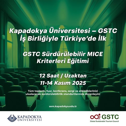 Türkiye’de GSTC onaylı ve sertifikalı eğitim vermeye yetkili olan Kapadokya Üniversitesi, GSTC tarafından oluşturulan eğitim içeriklerini Türkçeye çevirerek, Türkiye’den ve dünyadan örneklerle zenginleştirmiştir. Eğitimler GSTC tarafından “GSTC Eğiticisi” olarak yetkilendirilmiş, alanında uzman eğitmenler tarafından verilmektedir.
